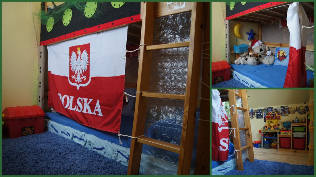 A oto wejście na statek ... Na dolnym pokładzie "tajna" kryjówka ... (zasłonka miała być inna, ale mój Skarb chciał tylko tą ... jeszcze z Mistrzostw Euro ... nie ma to jak wierny kibic:))
